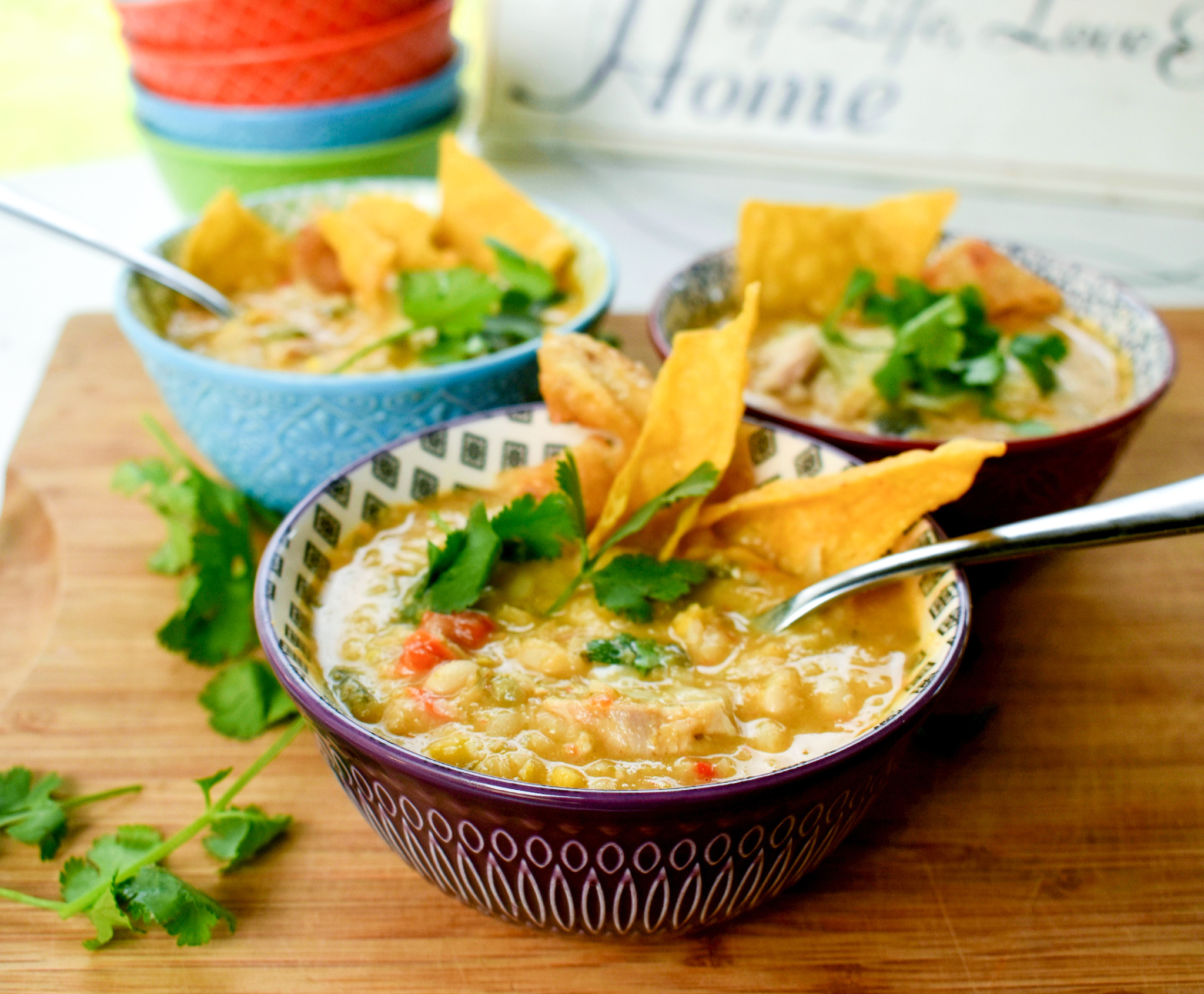 Add this soup to your list of freezable soups! Ladle into Ziplocs and lay flat in your freezer for an easy dinner on another night. This broth based soup freezes well. When ready to reheat, just warm in a pot on the stove or in your microwave. Add the chips and garnishes when ready to serve.