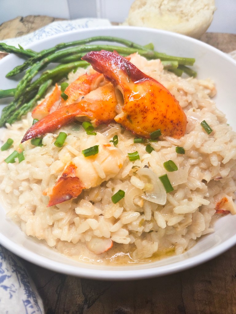 Lobster Risotto is rich and creamy made with arborio rice and plenty of melt in your mouth pieces of lobster.